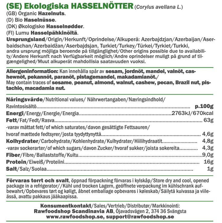 Våre økologiske hasselnøtter er av høyeste premiumkvalitet og fulle av smak. De er fantastiske å spise som de er eller å bruke i baking og matlaging. De har en rik og fyldig smak som hever alt fra enkle mellommåltider til festlige bakverk. Enten du nyter dem som de er, eller velger å riste hasselnøtter for en mer intens og personlig smak, er dette et produkt som raskt vil bli en favoritt i ditt spiskammer.