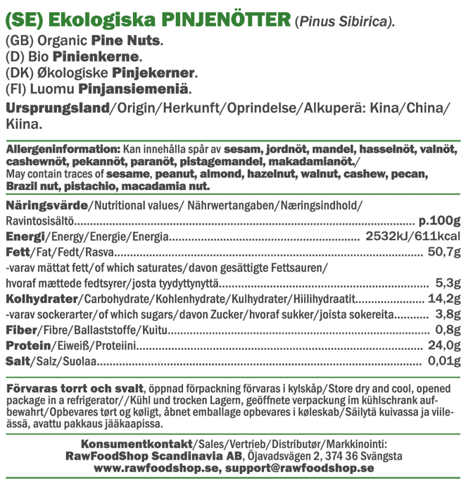 Disse pinjekjernene er ikke bare en smakfull ingrediens, de er også et ansvarlig valg. De er økologisk sertifiserte, noe som betyr at de er produsert uten kunstige plantevernmidler eller kjemikalier. Den økologiske dyrkingen bidrar til et mer bærekraftig jordbruk. Pinjekjernene er dessuten helt veganske, noe som gjør dem til et utmerket alternativ for deg som ønsker å velge bort animalske produkter. Å velge økologiske og veganske produkter er ikke bare et hyggelig innslag i matlagingen din, det er også et valg som bidrar til en bedre fremtid.
