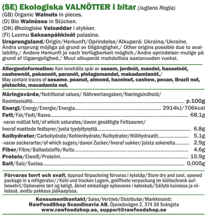 Økologiske valnøtter i biter tilbyr deg en herlig, naturlig smak og sprøhet som passer perfekt til både søte og salte retter. De er pakket i en praktisk 750g pose, noe som gjør dem enkle å bruke i matlaging og baking. Valnøttene er rawfood, noe som betyr at de ikke er varmebehandlet, og dette bevarer deres naturlige smak og struktur.