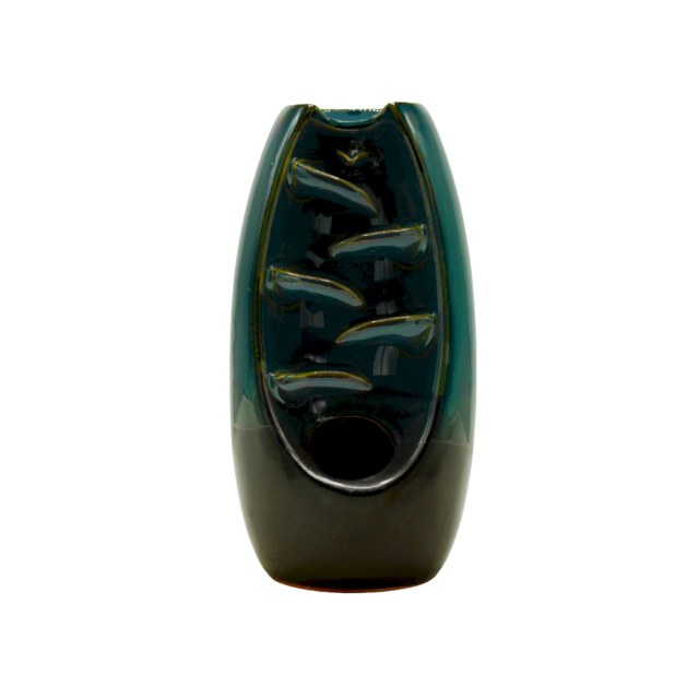 En elegant og funksjonell røkelsesbrenner designet for backflow-kjegler – perfekt for deg som ønsker å skape en beroligende atmosfære. Den ovale keramiske formen leder røyken i myke kaskader nedover og skaper en hypnotisk fossefallseffekt. Ideell for meditasjon, avslapning eller som en vakker detalj i hjemmet.