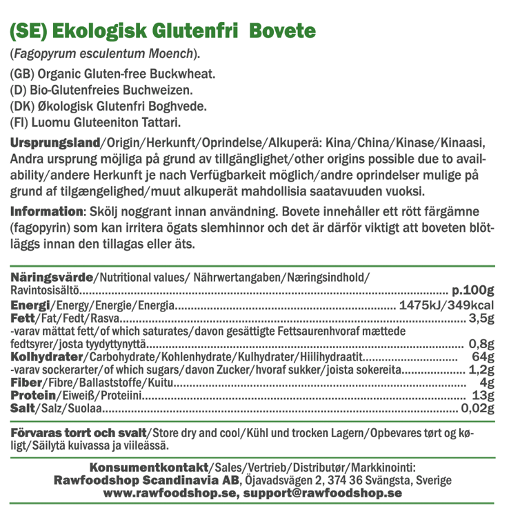 Viktig informasjon om bokhvete