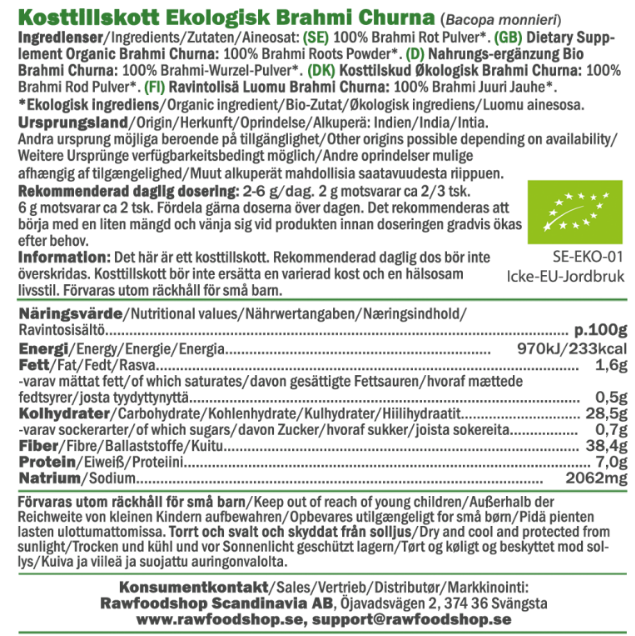 Brahmi Churna ØKO er et økologisk kosttilskudd i pulverform med en mild og nøytral smak – enkelt å blande inn i alt fra smoothies og juice til te og varme drikker. For deg som liker å eksperimentere på kjøkkenet, passer Brahmi Churna like godt i bakverk, brød og desserter som i salte retter – helt uten å dominere smaken. Med røtter i ayurvedisk tradisjon er dette et naturlig og vegansk tilskudd som bringer inn en kulturell dimensjon i hverdagsrutinene dine.