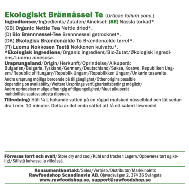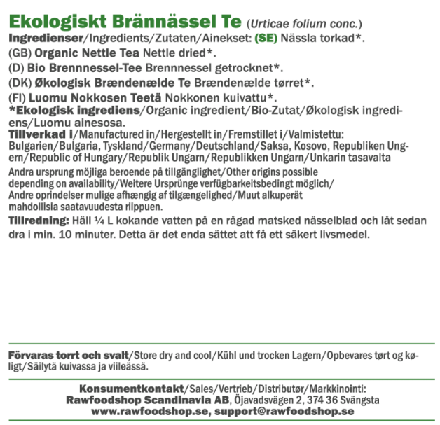 Brennesle Te ØKO er et økologisk urtete med en mild, rund smak og en mørk, innbydende farge i koppen – nesten som sort te, men helt naturlig og uten koffein. Det gjør det til et ideelt valg når du ønsker en beroligende kopp te på kveldstid. Brenneslete er blitt en favoritt blant dem som lever plantebasert, bryr seg om økologiske råvarer, og foretrekker rawfood.