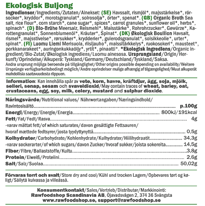Leter du etter en grønnsaksbuljong som løfter smaken i maten uten å kompromisse med kvaliteten? Da har du funnet riktig! Denne økologiske buljongen er laget med nøye utvalgte grønnsaker som løk, pastinakk, purre og spinat – helt uten unødvendige tilsetninger. Kun rene, naturlige ingredienser. Det beste? Den inneholder ikke tilsatt gjær. Smaken er rund og fyldig, takket være aromatiske urter som løpstikke, timian, rosmarin og fennikel. En skikkelig god blanding som passer perfekt både til hverdagens supper og helgens gryter. Buljongen løser seg lett opp i varmt vann og er like enkel å bruke som den er smakfull.