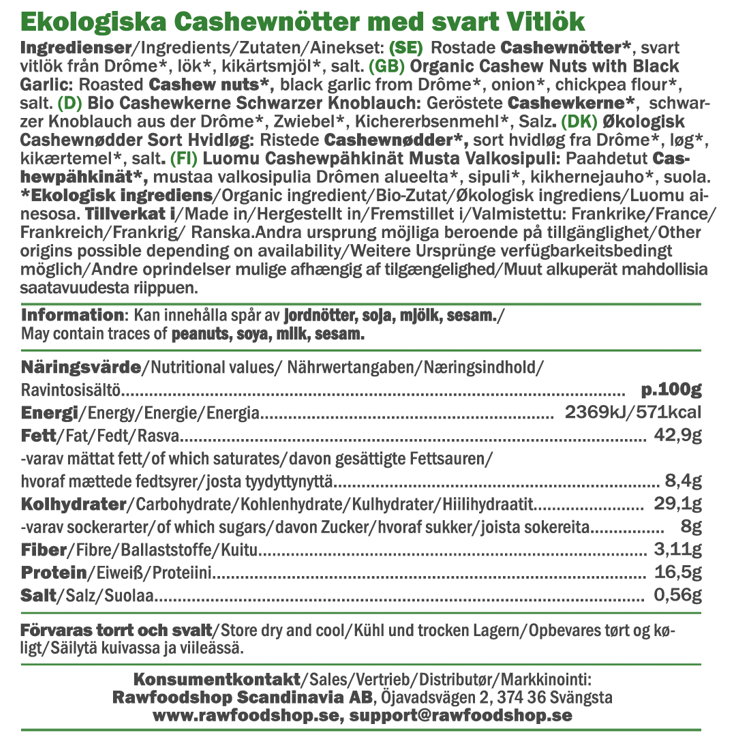 Økologiske ristede cashewnøtter med svart hvitløk