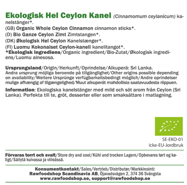 Ekte Ceylonkanel, også kjent som Cinnamomum Zeylanicum, stammer fra Sri Lanka og har en mild og aromatisk smak som skiller seg fra andre typer kanel. Våre økologiske Ceylon-kanelstenger er av høyeste kvalitet og gir en varm og balansert smak til både varme drikker, gryteretter og bakverk. Kanelstenger er perfekte for å gradvis frigjøre sin aroma og skape en behagelig duft i matlagingen.