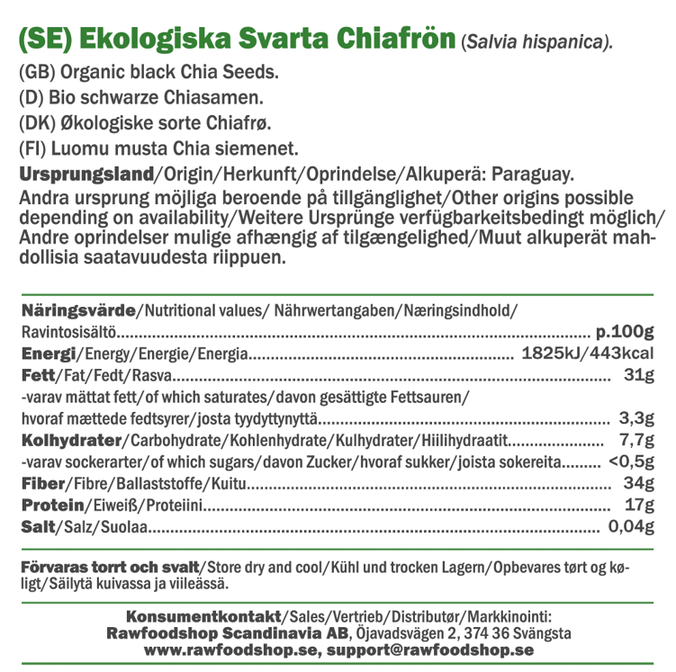 Våre chiafrø er økologisk sertifiserte, noe som betyr at de er dyrket uten syntetiske plantevernmidler eller kjemikalier. Dette gjør dem til et bærekraftig og ansvarlig valg for deg som verdsetter naturlige produkter. De små frøene tilbyr mange bruksområder og passer perfekt i både glutenfri og vegansk matlaging.