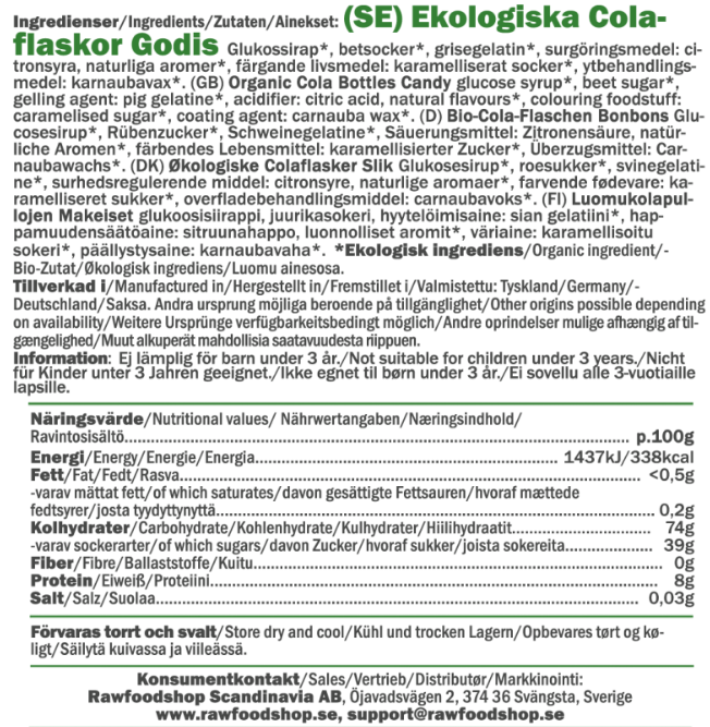 Disse colaflaskene er ikke bare smakfulle, men også produsert i henhold til strenge økologiske retningslinjer. Ingrediensene kommer fra kontrollerte økologiske gårder, slik at du kan nyte godteriet ditt med god samvittighet. En klassisk colasmak som gjør dem like fristende for både voksne og barn. Prøv våre colaflasker hvis du ønsker et gelégodteri som både smaker godt og er laget på en bærekraftig måte!