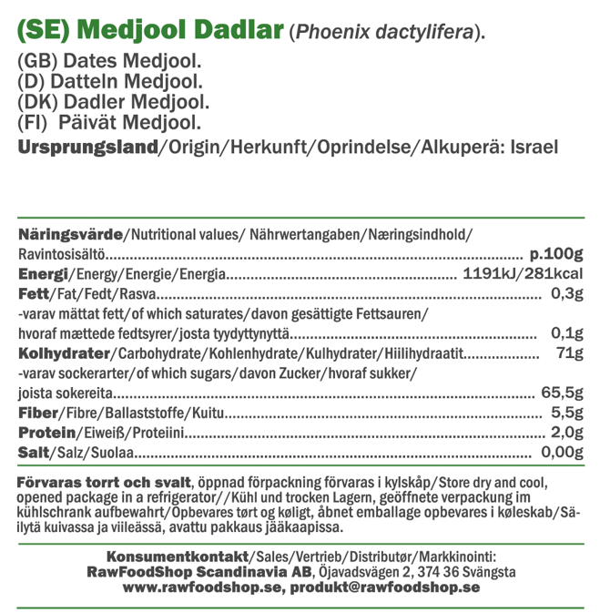 Våre Medjool-dadler er store, myke og glatte i konsistensen, noe som gjør dem til en gjenganger blant daddelsorter. De har lenge blitt betraktet som en luksuriøs konfekt og er ofte forbundet med spesielle anledninger. Med sin rike smak og naturlige sødme er de perfekte å nyte akkurat som de er, men de fungerer også utmerket som et naturlig søtningsmiddel i både bakverk og matretter. Benytt sjansen til å bestille hjem våre deilige Medjool-dadler i storpakke og fyll opp lageret ordentlig til kommende kjøkkenopplevelser!