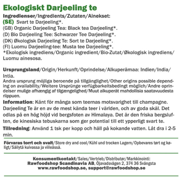 Darjeeling Te ØKO er en sort te som ofte omtales som teenes svar på champagne – og det er lett å skjønne hvorfor. Teet dyrkes høyt oppe ved foten av Himalaya, der klima og jordsmonn gir en unik karakter som har gjort dette teet verdenskjent. Smaken er lett, elegant og ofte blomsteraktig – en favoritt blant teelskere over hele verden. Å brygge en kopp av dette økologiske Darjeeling-teet er mer enn en vane – det er et lite øyeblikk med ren nytelse. Bruk én teskje per kopp, tilsett kokende vann og la det trekke i 2–5 minutter, avhengig av hvor fyldig du ønsker teen.