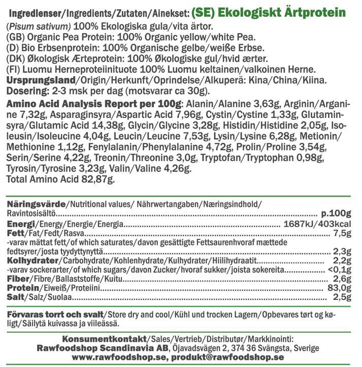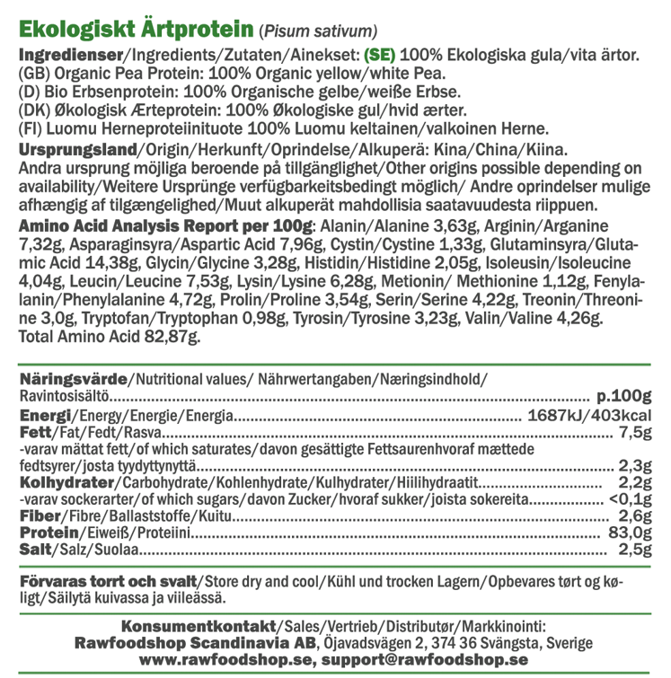 Økologisk erteprotein er et allsidig og naturlig plantebasert proteinpulver laget av hvite og gule erter (Pisum sativum). Det er et perfekt alternativ for deg som ønsker å supplere kostholdet ditt med et plantebasert protein, enten du lever en vegansk livsstil eller bare vil variere proteinkildene dine. Erteprotein er enkelt å bruke og passer både til baking og matlaging, noe som gjør det til en naturlig base i kjøkkenskapet ditt.