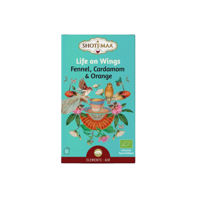Prøv Fennikel, Kardemomme & Appelsin Urtete ØKO – en økologisk te der tradisjon møter harmoni i hver kopp. Denne unike blandingen, "Shoti Maa Life on Wings", kombinerer fennikel, kardemomme og appelsin for en smakfull og inspirerende opplevelse. Shoti Maa, et familieeid selskap med røtter i ayurvedisk kunnskap og økologisk teproduksjon siden 2008, byr her på en urte­te som inviterer til ro og nytelse.