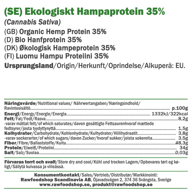 Hampaprotein 35% ØKO er et naturlig og plantebasert proteinpulver laget av økologiske hampfrø. Med sin milde, nøtteaktige smak er det et utmerket tilskudd til et balansert kosthold. Takket være den fine konsistensen kan du enkelt blande det inn i smoothies, grøt, bakverk og andre retter. Perfekt for deg som vil variere oppskriftene dine og utforske nye måter å bruke plantebasert protein i hverdagen.