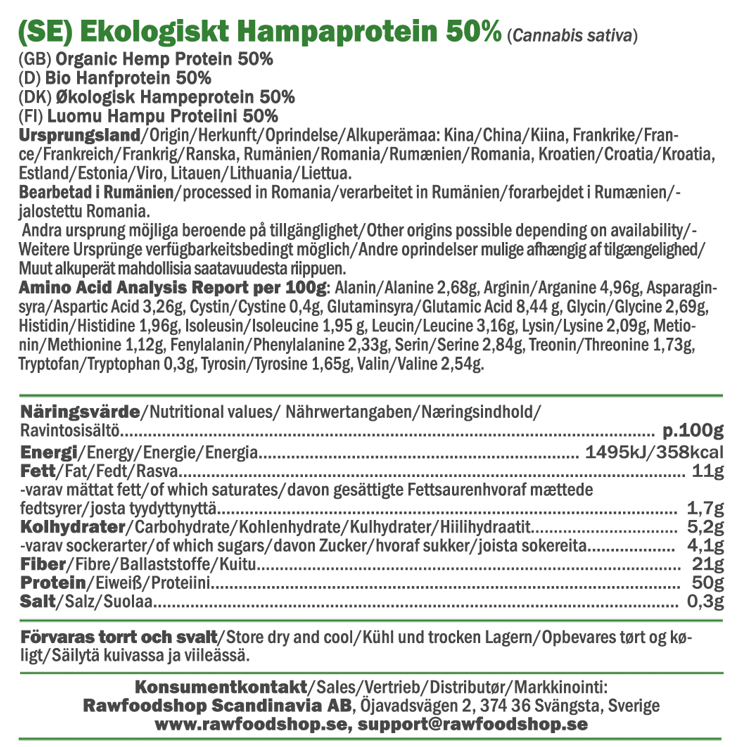 Oppdag Hampaprotein 50% ØKO – et vegansk proteinpulver laget av økologiske hampfrø. Med sin milde, nøtteaktige smak er det en utmerket råvare for deg som ønsker et plantebasert alternativ til tradisjonelt proteinpulver. Dette proteinpulveret løser seg lett opp i smoothies, drikker og grøt, men kan også brukes i matlaging og baking for å løfte dine favorittoppskrifter.