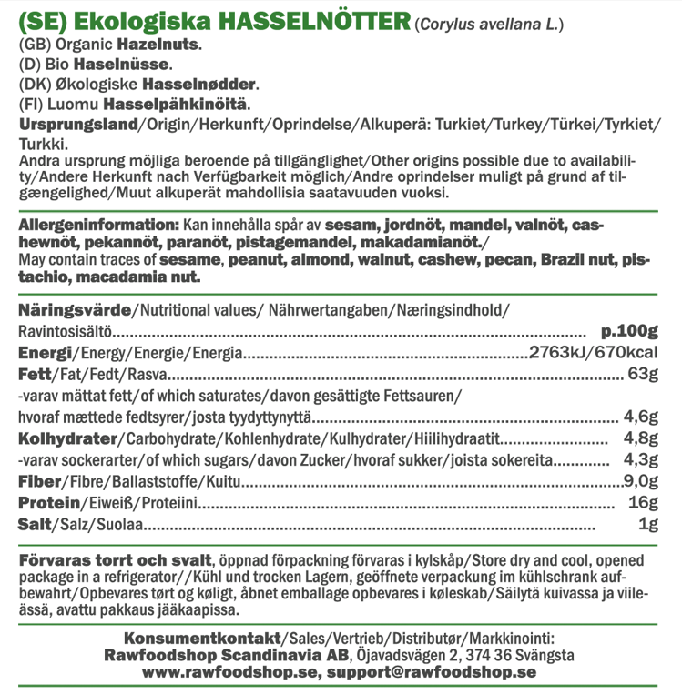 Våre økologiske hasselnøtter er av høyeste premiumkvalitet og fulle av smak. De er fantastiske å spise som de er eller å bruke i baking og matlaging. De har en rik og fyldig smak som forsterker alt fra enkle mellommåltider til festlige bakverk. Enten du nyter dem som de er, eller velger å riste hasselnøtter for en mer intens og personlig smak, er dette et produkt som raskt vil bli en favoritt i ditt spiskammer.