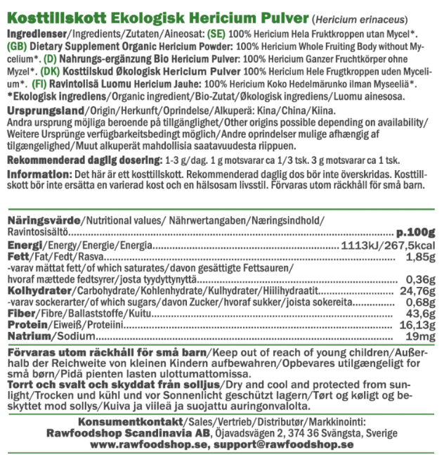 Hericium Pulver/Lion's Mane ØKO er et økologisk, vegansk kosttilskudd som er enkelt å bruke i hverdagen. Lion's Mane, også kalt piggsvinsopp, er en sopp som trives på døende løvtrær som osp, bjørk og bøk. Dens unike, korallignende form og luftige struktur har gitt den kallenavnet "løvemanke". Vårt økologiske Lion's Mane-pulver er nøye fremstilt for å bevare soppens naturlige egenskaper, helt uten tilsetningsstoffer.