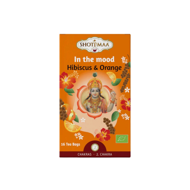 Hibiskus & Appelsin Urtete ØKO fra Shoti Maa er en økologisk teblanding som kombinerer hibiskusens friske karakter med en fruktig tone av appelsin. Inspirert av ayurvedisk tradisjon gir denne balanserte miksen av urter og krydder en varm invitasjon til ro og velvære. "Shoti Maa In the mood" gjenspeiler merkets lange erfaring med å forene naturlige ingredienser i unike og nøye sammensatte teblandinger.