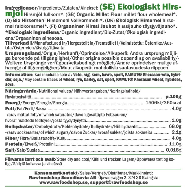 Hirsemel er perfekt for deg som vil utforske nye og spennende smaker og konsistenser i baksten. Vårt økologiske hirsemel har en ekstra fin, nesten silkemyk tekstur og en naturlig, lett sødme som gjør det spesielt godt egnet til lyse bakverk som muffins, småkaker og brød. Selv om det ligner vanlig hvetemel, har hirsemel en mild sødme og brukes helst i kombinasjon med andre meltyper for å gi riktig struktur og unngå at baksten blir for smuldrete. Å bake med hirsemel er en flott måte å gi klassiske oppskrifter en ny og spennende vri. I mange oppskrifter brukes det nettopp for å tilføre en lett nøtteaktig smak og en gyllen finish.