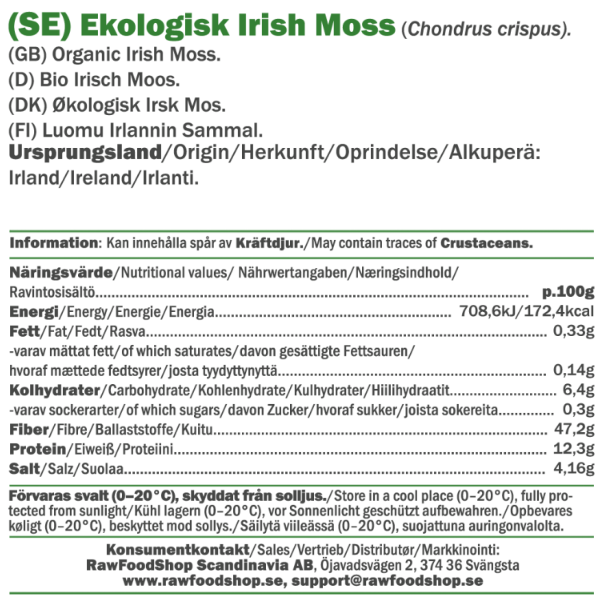 Irish Moss er en uunnværlig ingrediens for deg som liker å lage eller bake vegansk. Den fungerer som et naturlig fortykningsmiddel i alt fra puddinger og mousse til syltetøy og iskrem. Enten du eksperimenterer med nye rawfood-retter eller ønsker et plantebasert alternativ til gelatin, er Irish Moss en allsidig og naturlig løsning!