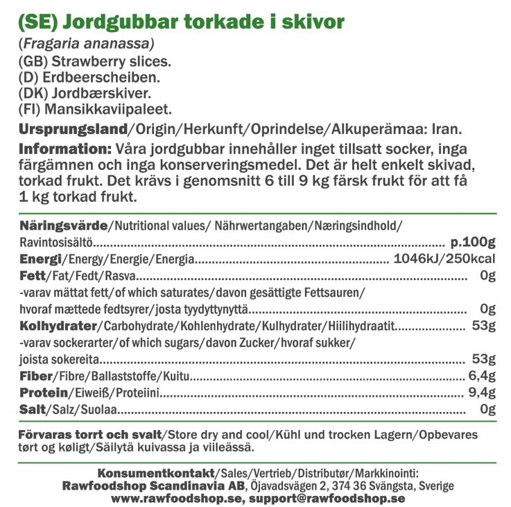 Disse tørkede jordbærskivene gir et smakfullt løft til både frokost og dessert. Bruk dem i granola, yoghurt, bakverk eller drikker – klipp dem i biter og tilsett i muffins, småkaker eller hjemmelagde energibarer. De passer også utmerket i te, fruktinfusjoner eller lemonade. Prøv gjerne å kombinere dem med rabarbra for en frisk og naturlig smakseksplosjon! Enten du er på tur, reise eller bare trenger et enkelt mellommåltid, er disse tørkede jordbærene et smart og smakfullt valg. Høy kvalitet og mange bruksområder – akkurat slik vi liker det.