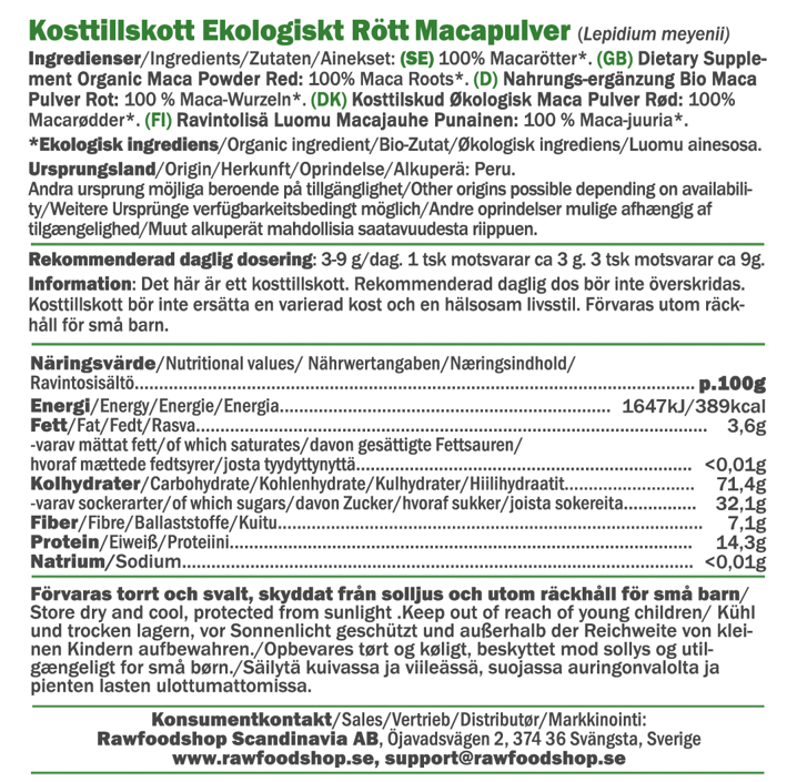 Dette er et vegansk og økologisk kosttilskudd med opprinnelse fra det sentrale høylandet i Peru, hvor maca-planten vokser på den karrige Junín-platået – hele 3 800 til 4 400 meter over havet. Maca Pulver Rød ØKO er skånsomt tørket og malt for å bevare næringsstoffene og gi deg et fint pulver med mildt søtlig og jordaktig smak. Det er enkelt å blande i smoothie, plantebasert melk eller din daglige havregrøt.