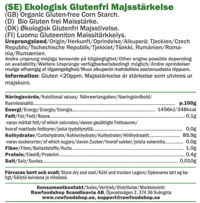 Maisstivelse ØKO er en naturlig og økologisk stivelse utvunnet fra maiskorn. Den er et uunnværlig hjelpemiddel på kjøkkenet når du vil oppnå en glatt og perfekt konsistens i sauser, supper, kremer og bakverk. Med sin nøytrale smak og fine, hvite tekstur fungerer den utmerket som jevning i både varme og kalde retter. I motsetning til maismel, som inneholder hele maiskornet og har en gul farge, består maisstivelse kun av stivelsen – noe som gjør den helt hvit og mer konsentrert i sin tykningsfunksjon.