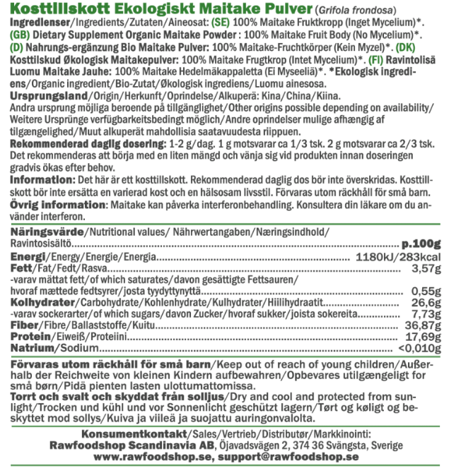 Det finmalte maitake-pulveret er enkelt å bruke og kan blandes i te, smoothies eller tilsettes i ulike matretter. Siden det er et vegansk kosttilskudd, er det et perfekt alternativ for deg som ønsker å inkludere plantebaserte produkter i kostholdet ditt. Med sin økologiske produksjon og praktiske pulverform er maitake en allsidig ingrediens som kan brukes på mange måter i din daglige rutine.