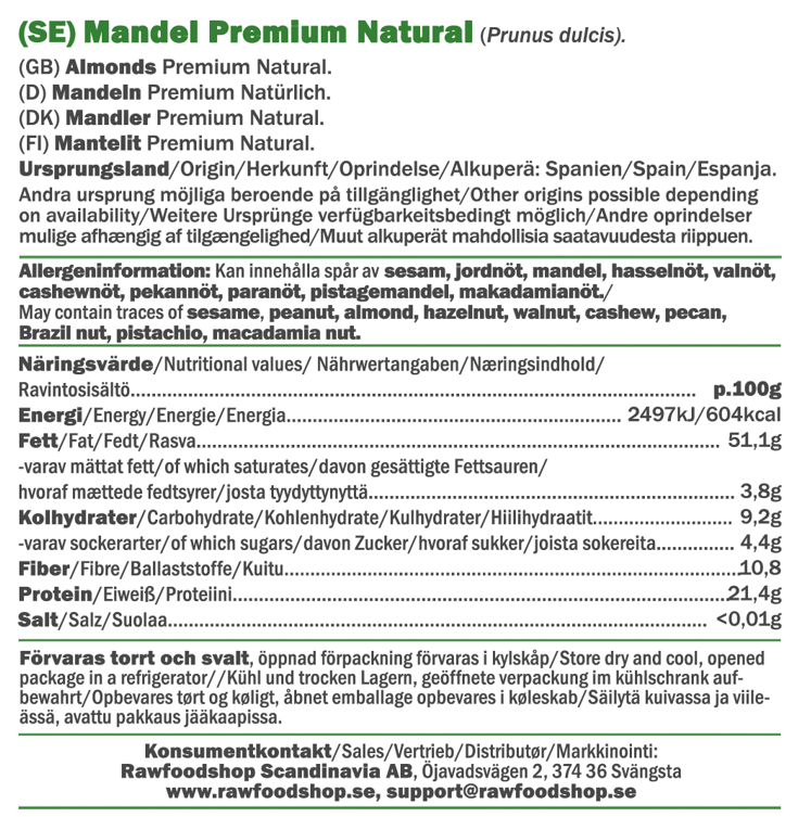 Mandel premium RAW i storpakke - 1kg