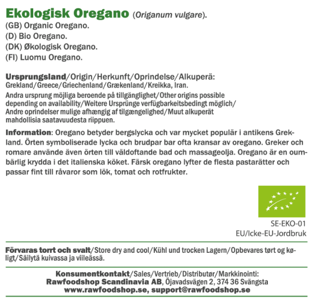 Vår økologiske oregano er en smakfull krydderurt som tilfører en rik og fyldig aroma til maten. Den klassiske tørkede oreganovarianten passer perfekt til alt fra pizza og ovnsbakte smørbrød til kraftige pastasauser og tomatbaserte supper. Kombinasjonen av oregano og tomat er nemlig en sikker vinner når du vil fremkalle den ekte, rustikke smaken som kjennetegner middelhavskjøkkenet. Oregano – også kjent som kungsmynte eller vill merian – har en intens og karakteristisk duft som løfter både enkle hverdagsretter og mer avanserte måltider.