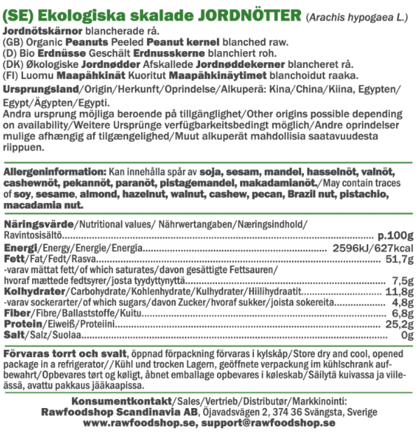 Våre økologiske peanøtter er sertifisert i henhold til EU Organic-standard, noe som betyr at de dyrkes uten kjemiske plantevernmidler og under bærekraftige forhold. Når du velger våre nøtter, får du ikke bare et produkt av høyeste kvalitet, men også et miljøvennlig alternativ som er bra for både deg og planeten. Med deres unike smak og tekstur vil de raskt bli en uunnværlig ingrediens på kjøkkenet ditt.