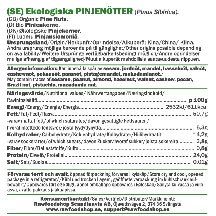 Disse pinjekjernene er ikke bare en smakfull ingrediens, de er også et ansvarlig valg. De er økologisk sertifiserte, noe som betyr at de er produsert uten kunstige plantevernmidler eller kjemikalier. Den økologiske dyrkingen bidrar til et mer bærekraftig jordbruk. Pinjekjernene er dessuten helt veganske, noe som gjør dem til et utmerket alternativ for deg som ønsker å velge bort animalske produkter. Å velge økologiske og veganske produkter er ikke bare et hyggelig innslag i matlagingen din, det er også et valg som bidrar til en bedre fremtid.