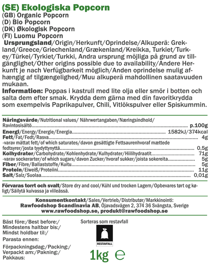 Popcorn ØKO er det opplagte valget for deg som vil nyte skikkelig gode og sprø popkorn. Disse økologiske popcornkjernene poppes enkelt i en kjele med litt olje eller smør i bunnen. På bare noen få minutter fylles kjøkkenet med den velkjente duften av nypoppede popcorn – en klassiker som aldri går av moten. Disse popcornene er et naturlig og smakfullt alternativ som passer til alle anledninger – enten du ser en film, er sammen med venner eller bare har lyst på noe godt til fredagskosen.
