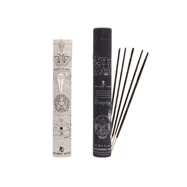 The Cleansing Spell Incense er en vakkert presentert ritualopplevelse for deg som ønsker å rense energi og fordype din spirituelle praksis. Pakken inneholder tolv røkelsespinner med frisk, urteaktig duft, en bergkrystallpendel og et spådomskart – alt samlet i et trykt rør som vekker nysgjerrighet og formidler magi.