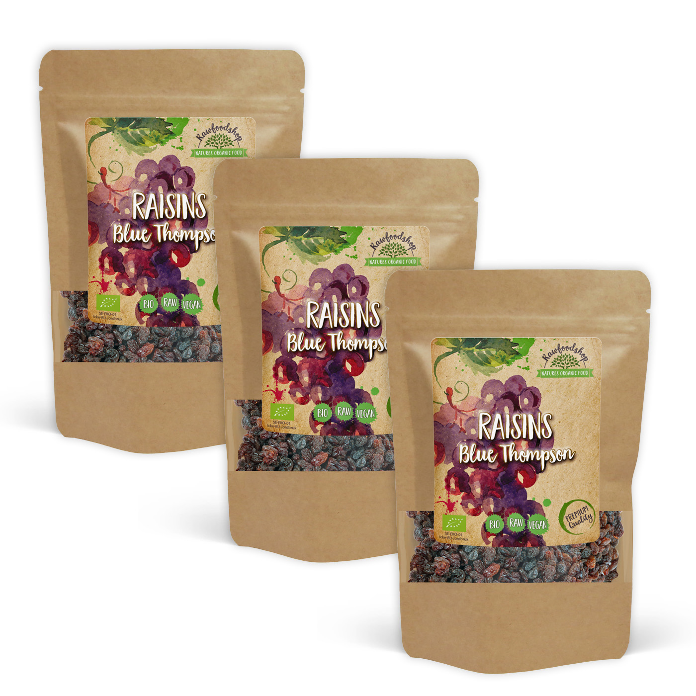 Inneholder 3 pakker av: Rosiner Blue Thompson RAW ØKO 1kg