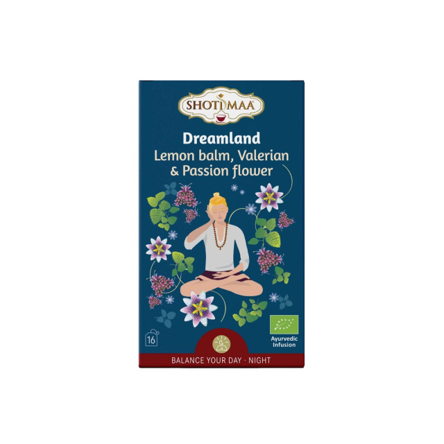 Sitronmelisse, Valerianarot & Pasjonsblomst Urtete ØKO fra Shoti Maa er en økologisk urtete som kombinerer tradisjonell ayurvedisk kunnskap med en unik smaksopplevelse. Med nøye utvalgte urter og krydder skaper dette smaksatte teet, også kjent som "Shoti Maa Dreamland", en harmonisk blanding som inviterer til rolige øyeblikk i hverdagen. Shoti Maa, et familieeid selskap siden 2008, står for høy kvalitet og omtanke i hver eneste kopp.