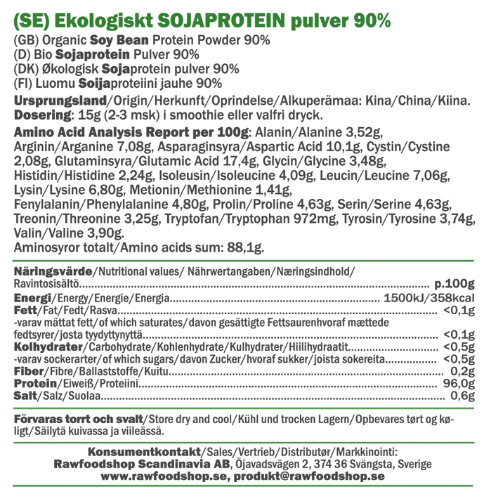 Soyaprotein 90% ØKO har en fin, lettløselig konsistens, noe som gjør det enkelt å bruke i forskjellige proteinpulver-oppskrifter. Bland det i proteinsmoothies, shakes, bakverk eller matretter for et ekstra tilskudd av vegansk protein uten å påvirke smaken. Takket være det plantebaserte opphavet er det et perfekt alternativ for veganere, vegetarianere og alle som ønsker en bærekraftig proteinkilde. Oppdag kraften i økologiske soyabønner, og la dette soyaproteinet bli en naturlig del av din daglige rutine!