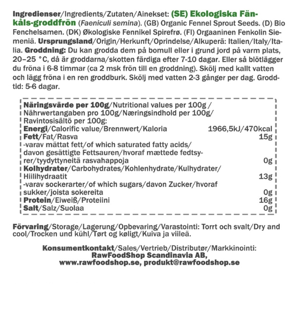 Våre økologiske spirefrø av fennikel gjør det enkelt og gøy å dyrke egne spirer hjemme på kjøkkenbenken. Med en mild lakrissmak tilfører de en spennende vri til hverdagsmaten. Fennikelspirer passer perfekt i salater, smoothies og wraps – der de både gir smak og en frisk sprøhet. Prøv å toppe en bringebærsmoothie for en overraskende, men kjempegod kombinasjon, eller strø dem over en suppe for et dekorativt og smakfullt løft. I asiatiske retter gir de en frisk kontrast til sterke krydder, og på brødskiva gir de en sprø finish som løfter måltidet et hakk opp. Med disse frøene i skapet har du alltid muligheten til å skape grønne, smakfulle innslag – inspirerende og lett tilgjengelig.