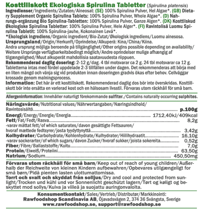 Våre spirulina-tabletter er et kosttilskudd laget av økologisk spirulinapulver (Spirulina platensis) fra hele algen – helt uten tilsetningsstoffer eller bindemidler. For deg som ønsker et vegansk kosttilskudd, men vil slippe å bruke pulver, er dette et enkelt og praktisk alternativ i hverdagen. Tablettene er lette å svelge og enkle å ha med seg i vesken, på jobb eller trening – et smart format for deg som er på farten og ønsker å leve bærekraftig.