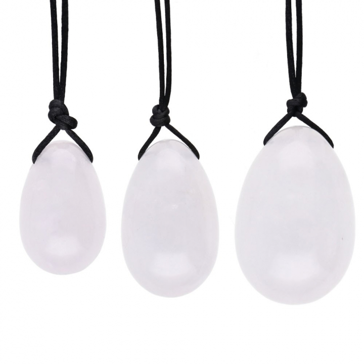 Yoni egge Hvite kvarts med hull og snor 3 stk